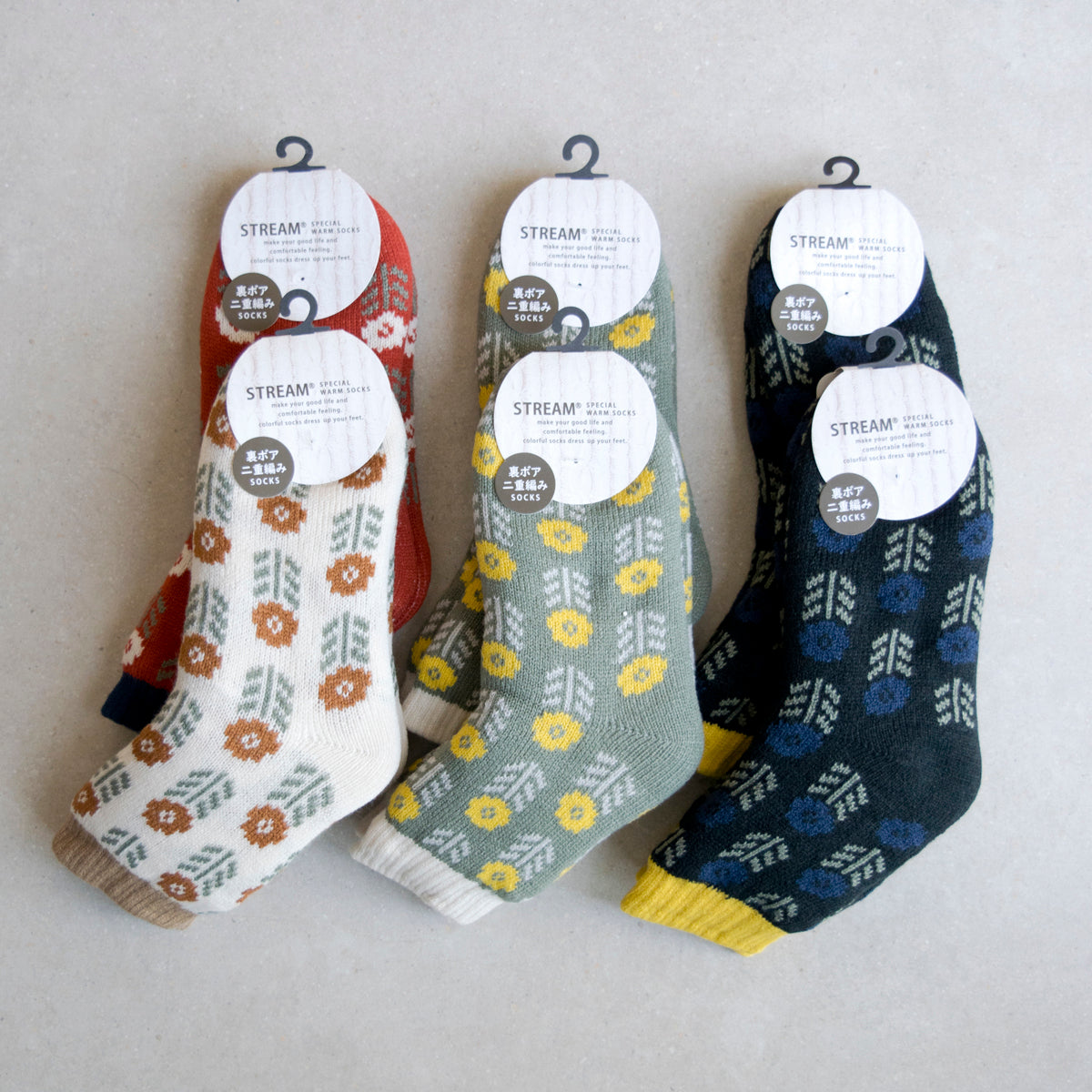 גרביים איכותיים מבית Stream יפן, בדגם פרחי שדה בצבע לבן, עשויים בד נעים ונושם אך עמיד מאוד, במבחר הדפסים ואיורים, טקסטורות ושילובי צבעים מעניינים.