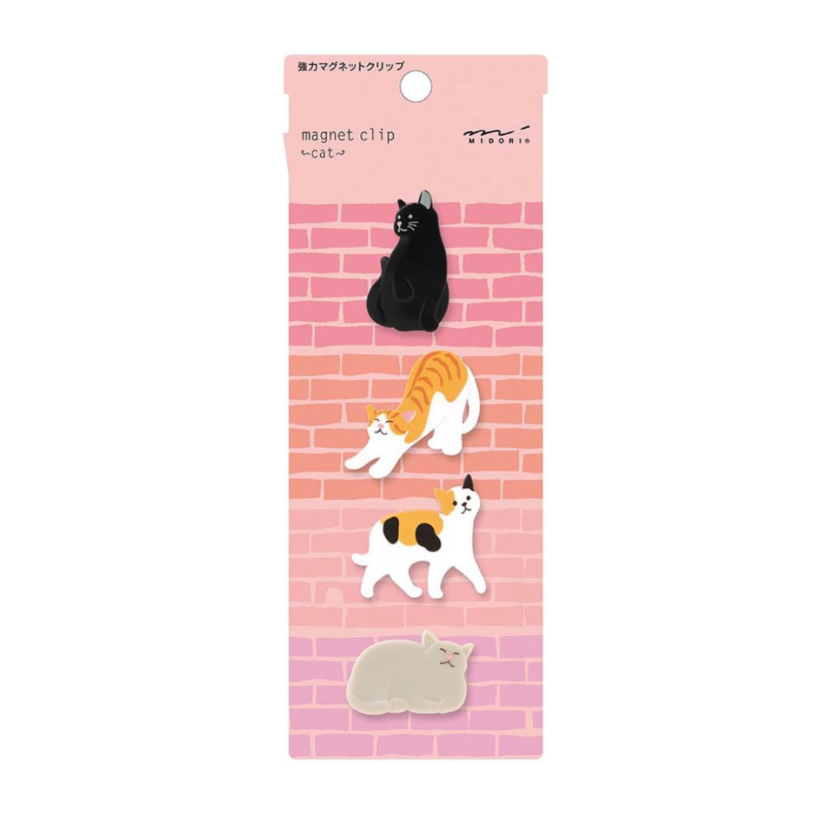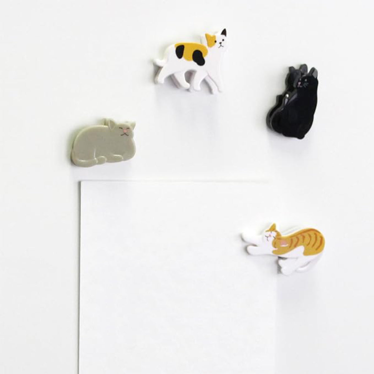סט של 4 קליפסים עם מגנט קטנים ואיכותיים מבית מידורי, מעוצבים בצורות שונות של חתולים. מושלמים לקישוט ולתזכורות היומיות על המקרר, וכדקורציה על לוח מתכת להדפס או תמונה אהובה.