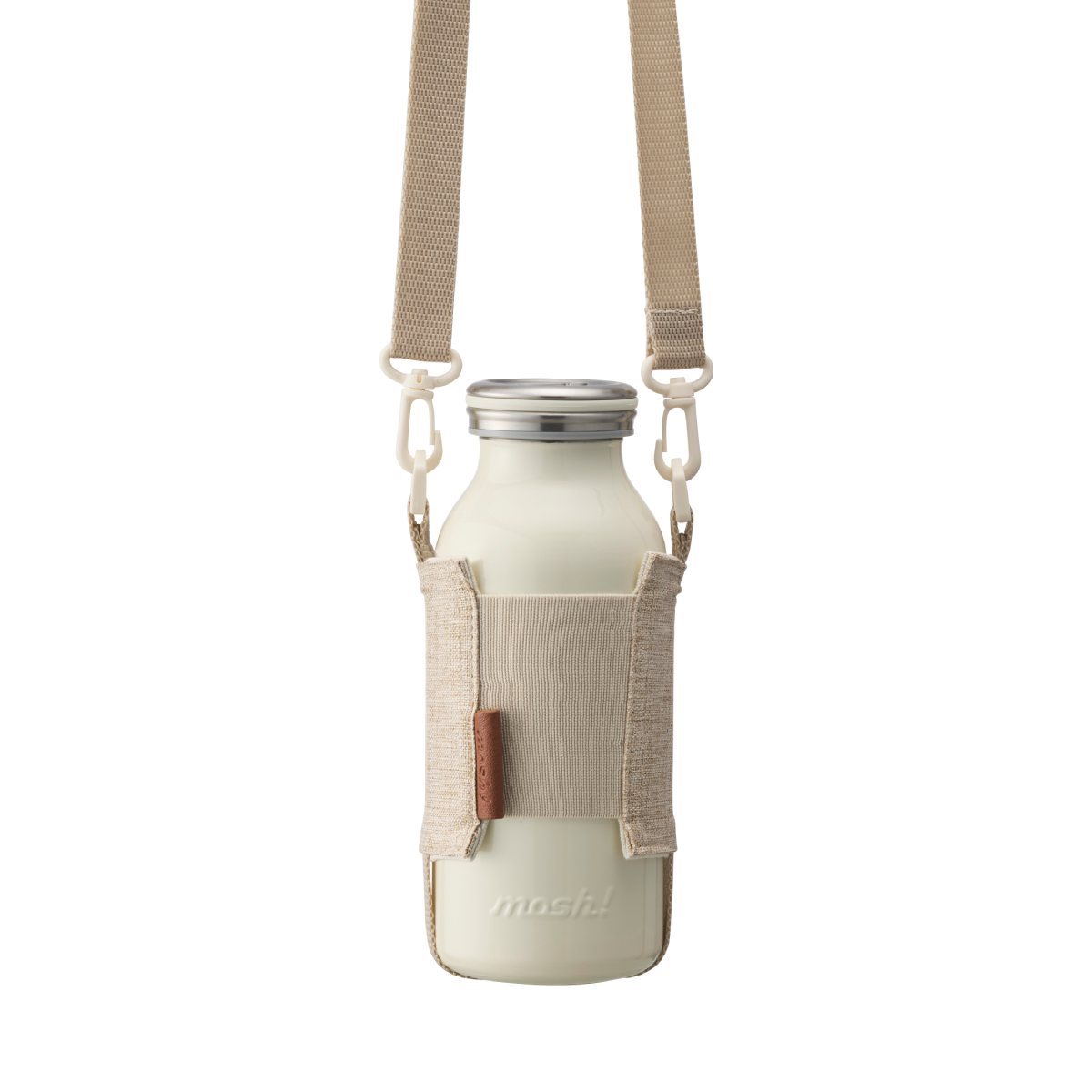 רצועת הנשיאה של מוש מחבקת את הבקבוק בעדינות ומאפשרת לשאת אותה על הכתף או באלכסון - לטיולים, לים, לסטודיו, למשרד או פשוט לסידורים בעיר.