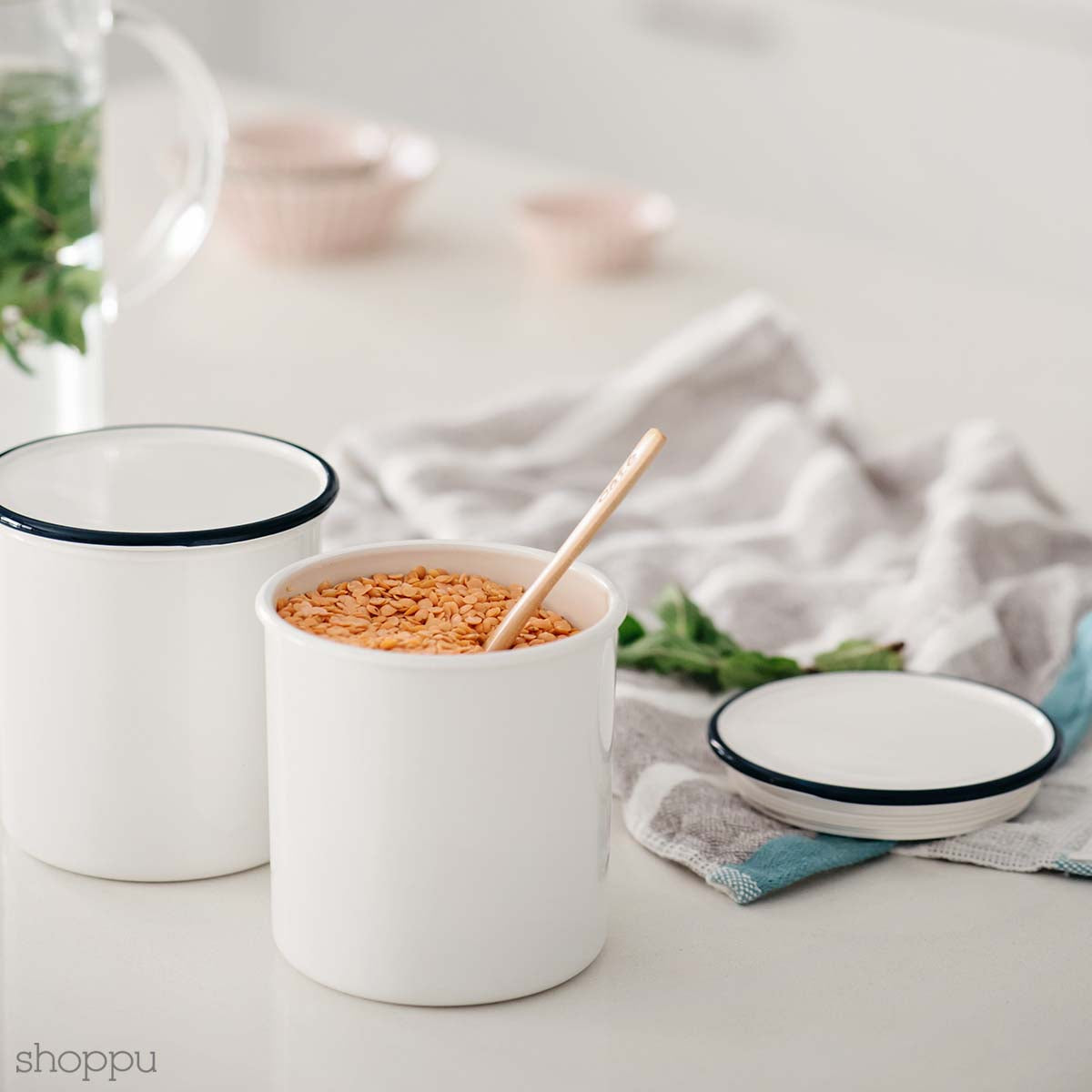 כלי אחסון בעיצוב רטרו מינימליסטי מסדרת Retro Moda של טקנקה - ליין כלים אקולוגיים, עשויים פלסטיק איכותי דמוי אמייל הממוחזר מבקבוקים, ללא BPA וללא עופרת, אינם פולטים או סופחים חומרים כימיים ובטוחים לכל הגילים. הכלים הקומפקטיים מסדרת רטרו מודה דקים וקלי משקל, אך עמידים מאוד ואינם שבירים. מצוינים לארוחות ToGo, לפיקניק והגשה אסתטית של נשנונים ומנות קטנות.