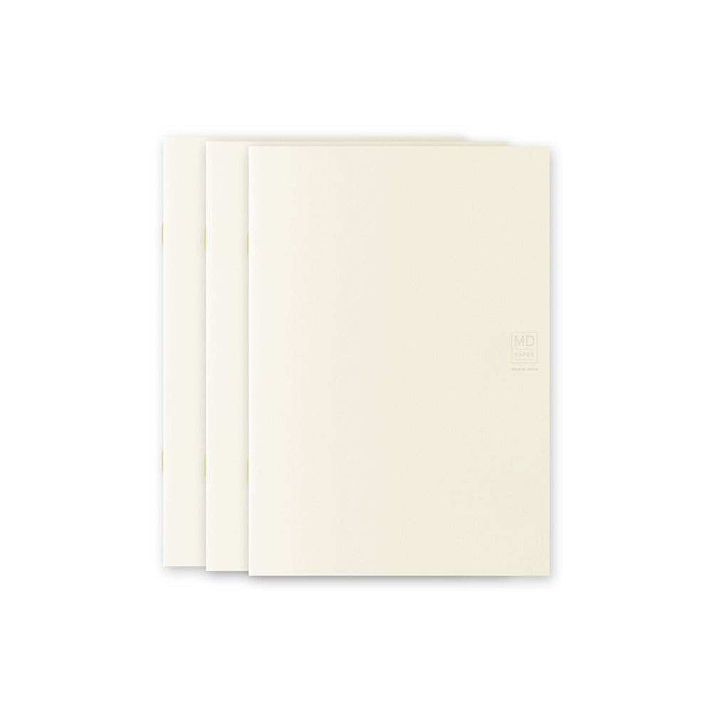 סט 3 מחברות עם כריכה דקה בעיצוב קלאסי ומוקפד מסדרת MD של מידורי יפן. עשויות נייר יפני משובח, חזק ועמיד מפני זליגת דיו, המאפשר כתיבה זורמת וחלקה. נוחות לאחיזה ושימוש, ניתן לייעד כל מחברת בסט למטרה שונה ולקשט בהתאם.