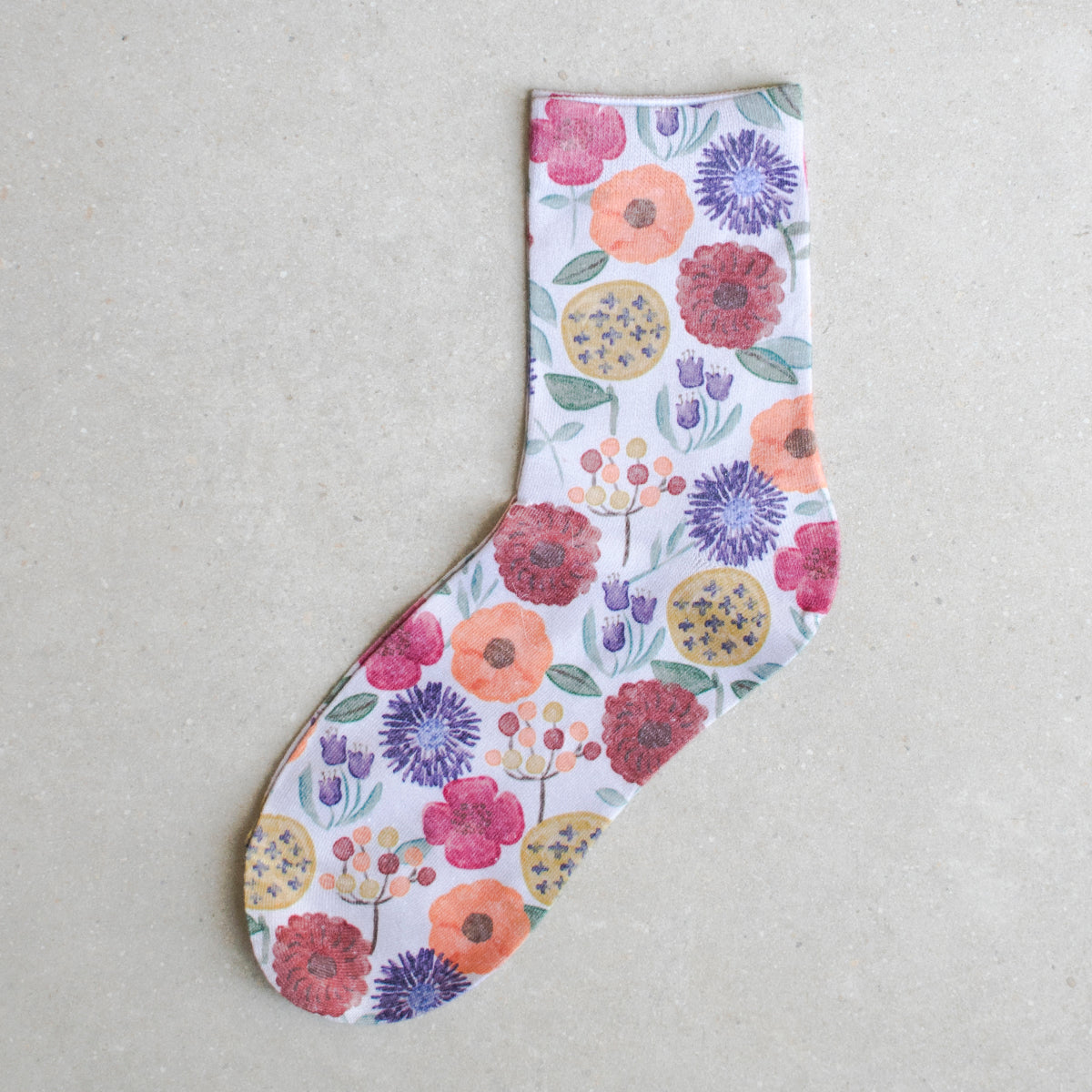 גרביים איכותיים מבית Stream יפן, בדגם פרחי חורף, עשויים בד נעים ונושם אך עמיד מאוד, במבחר הדפסים ואיורים, טקסטורות ושילובי צבעים מעניינים.
