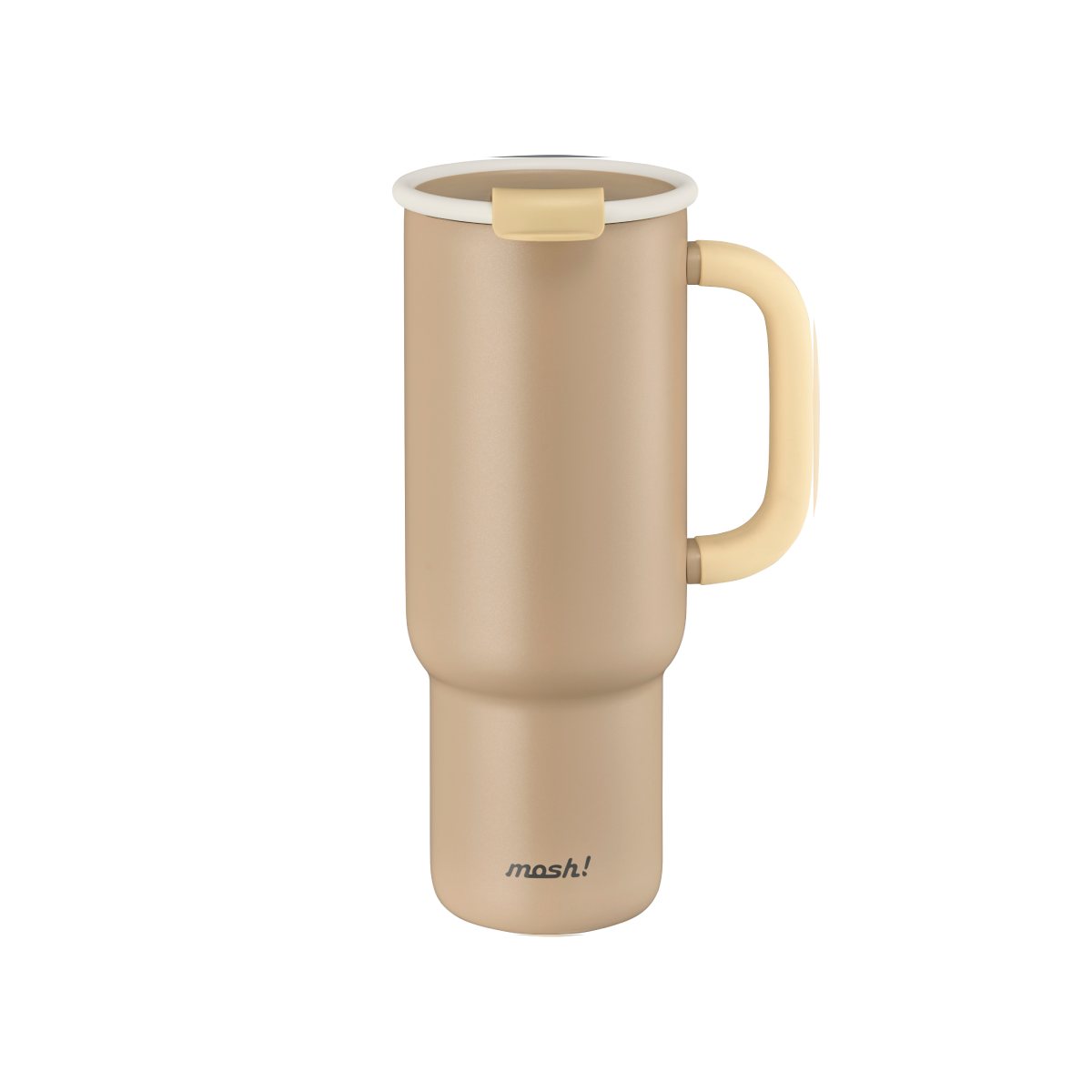 כוס תרמית לאטה עם קש קופץ וידית 820 מ"ל - לבן מט