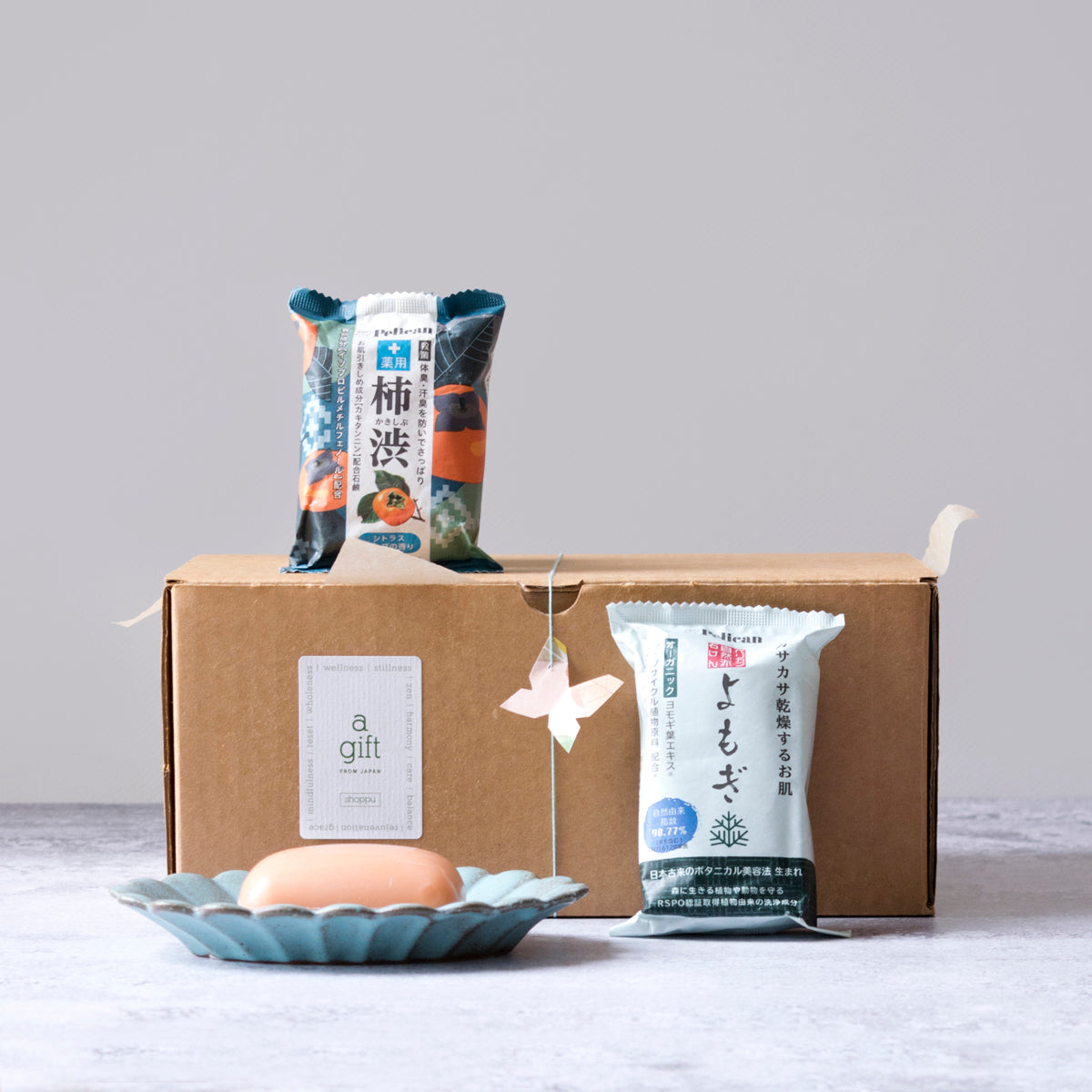 מארז מתנה - 2 סבונים יפנים + צלוחית קרמיקה