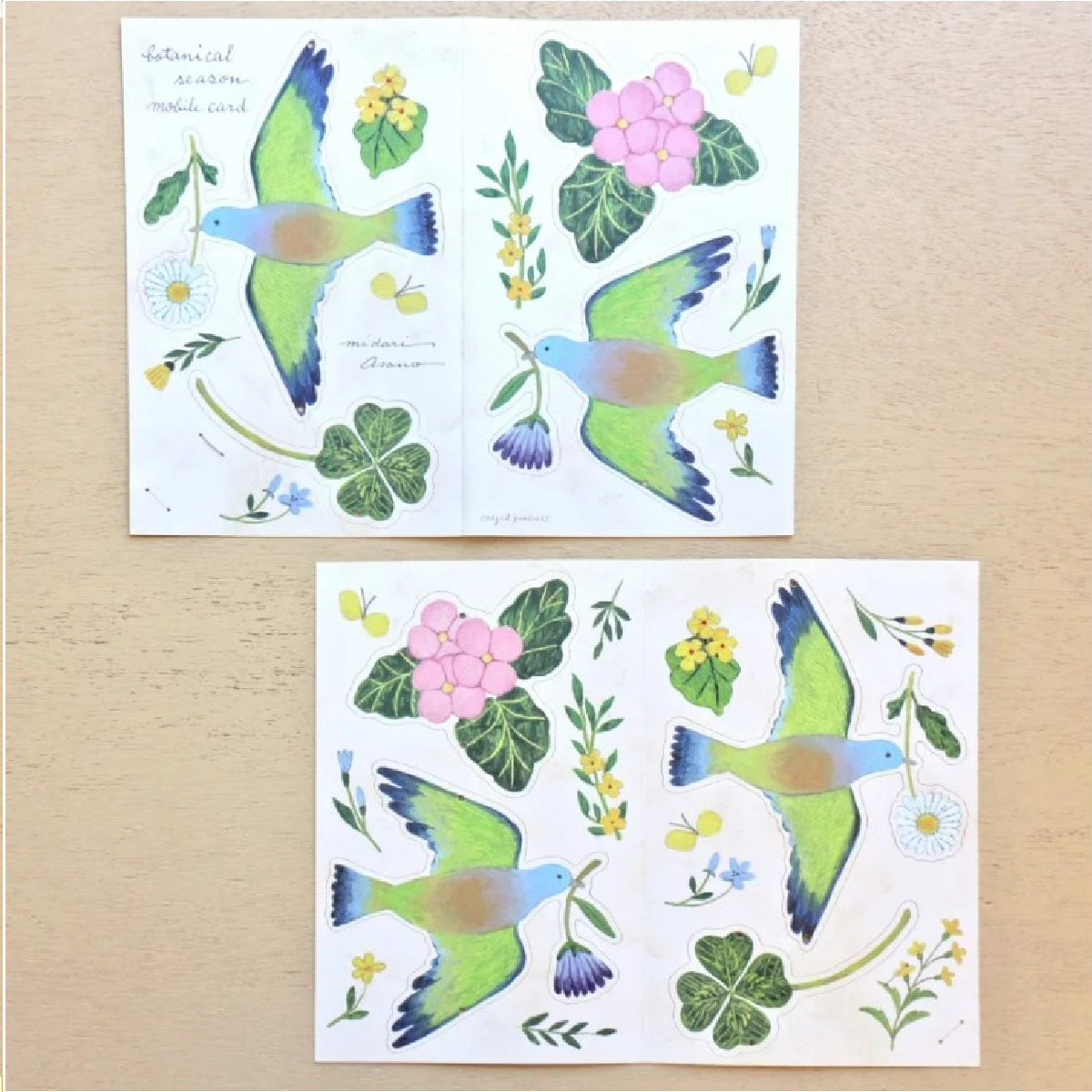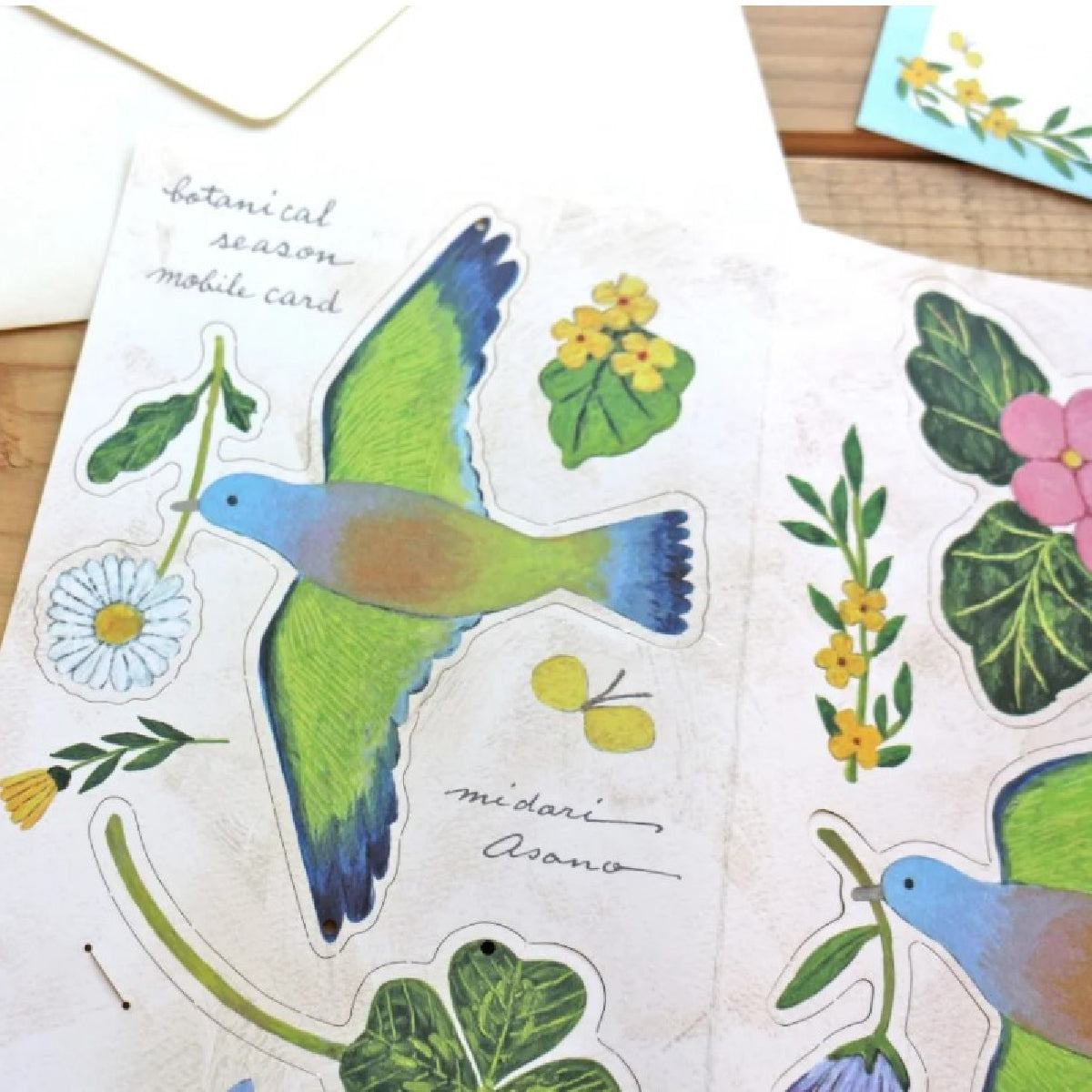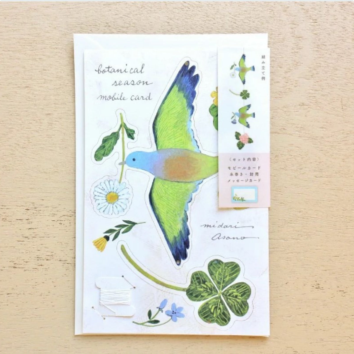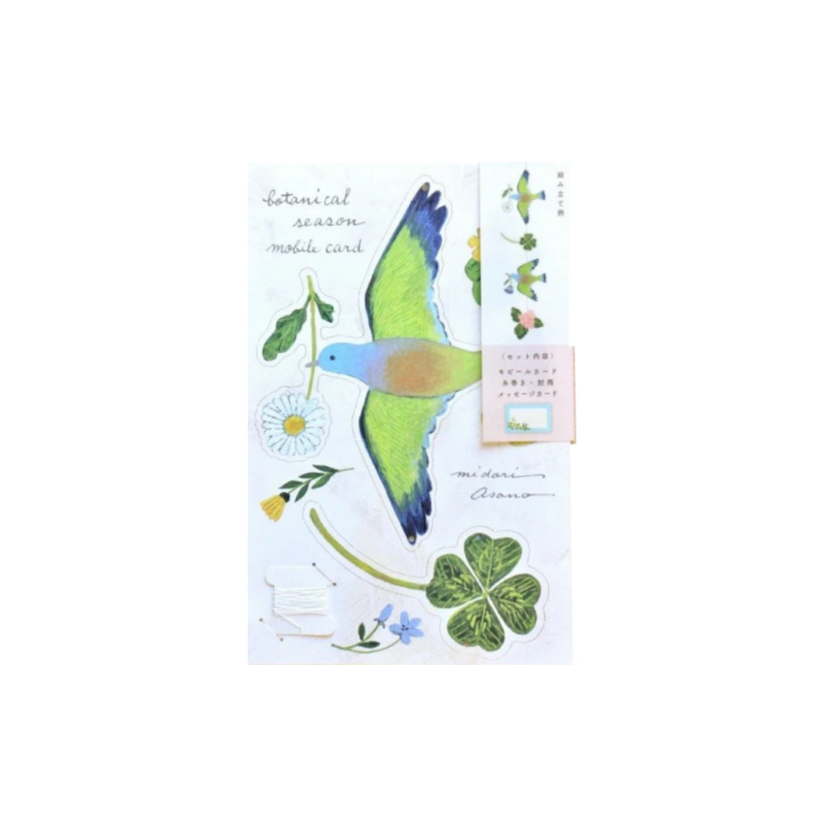 מובייל ייחודי מבית Midori Asano יפן, עוצב ע"י המאייר היפני Cozyca עשוי נייר יפני איכותי ומעוטר איורי ציפורים ופרחים עדינים וקסומים. ניתן לתלייה באמצעות סליל חוט המצורף לערכה. כלולים בה גם כרטיס ברכה קטן ומעטפה, בהם ניתן להשתמש כדי להעניק את המובייל כמתנה.