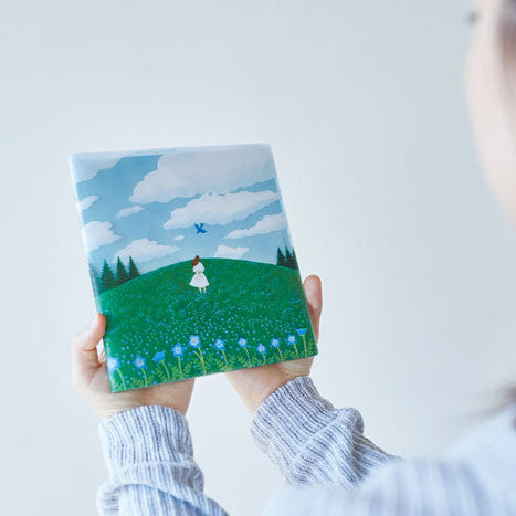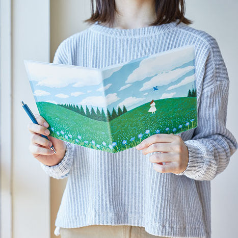מחברת המלווה באיור מקסים של Kunomari בו ילדה חוצה שדה פרחים כחולים, וציפור כחולה מלווה אותה. פרחים קטנים גם מעטרים גם את דפי המחברת הפנימיים.