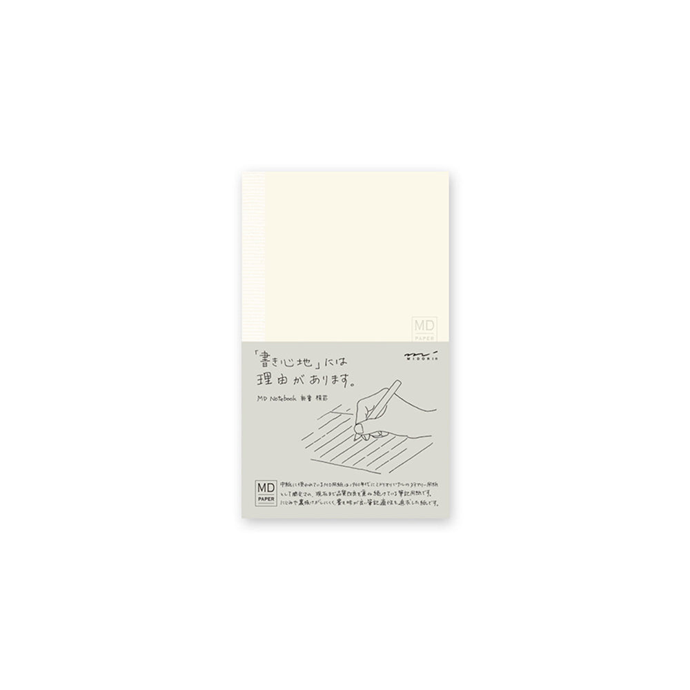 מחברת מעוצבת מסדרת MD של מידורי יפן, עשויה נייר יפני משובח, חזק ועמיד מפני זליגת דיו, המאפשר כתיבה זורמת וחלקה. נוחה לאחיזה ושימוש, ממש עושה חשק לקחת עט או עיפרון ופשוט לכתוב.