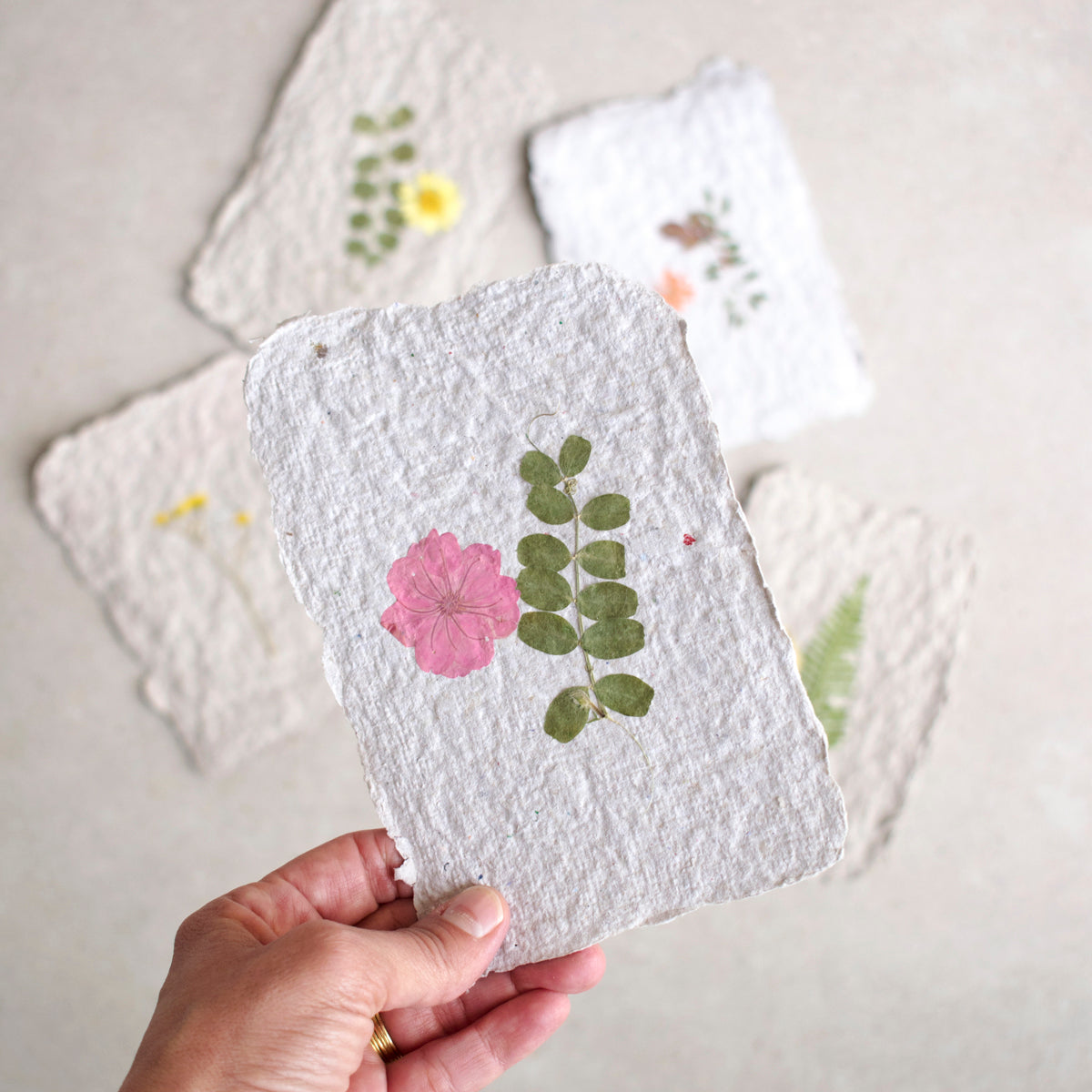 סט של 3 גלויות מנייר ממוחזר בעבודת יד
