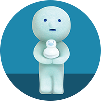 סמיסקי עם ברווזון – רוצה לשחק עם הברווזון באמבטיה, אך מפחד להיכנס