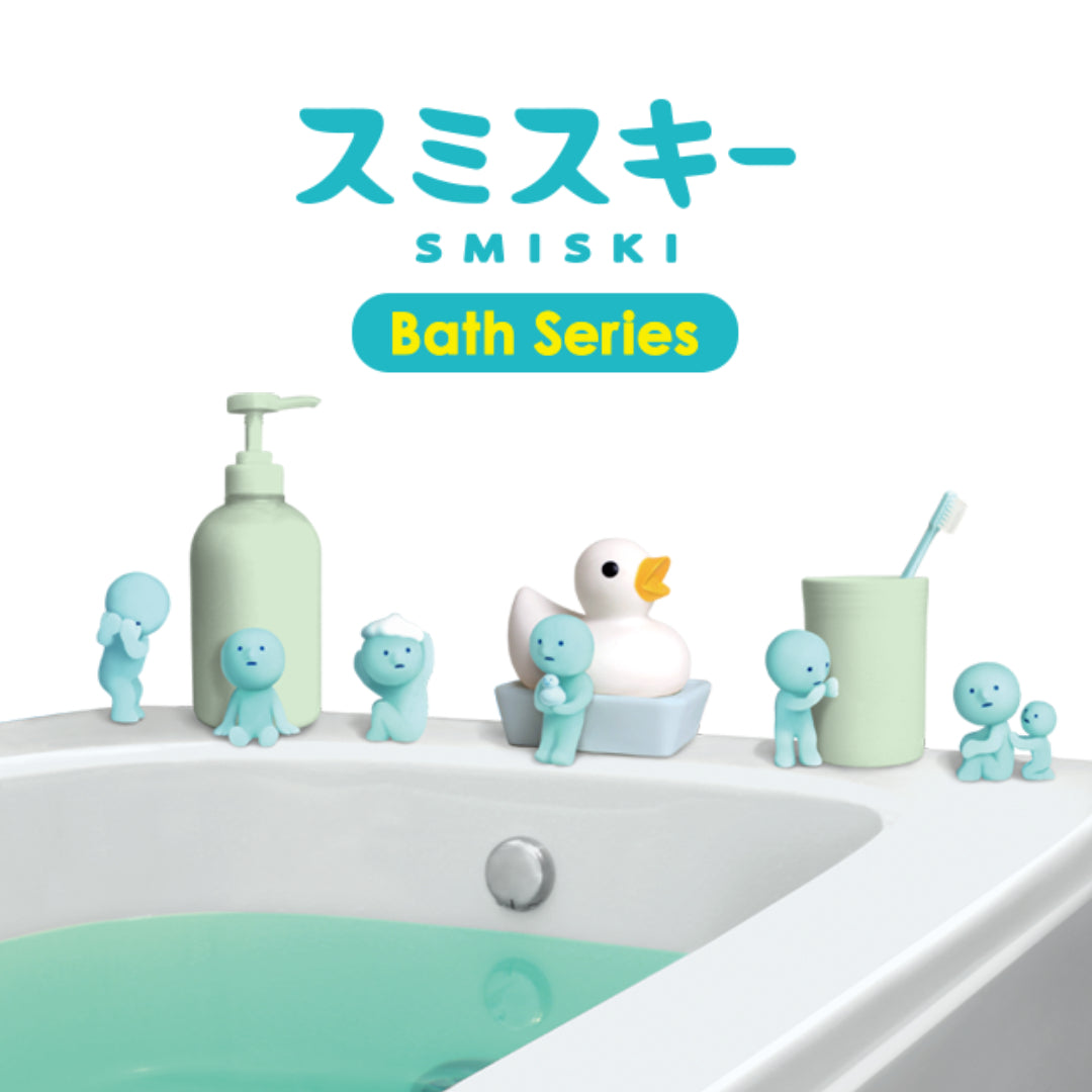בובות Smiski זוהרות בחושך מסדרת אמבטיה – סדרה מתוקה בה היצורים הקטנים מסתובבים להם בפינות חדר האמבטיה ועושים כל אחד משהו משעשע. ישנן 6 דמויות ידועות בסדרה: