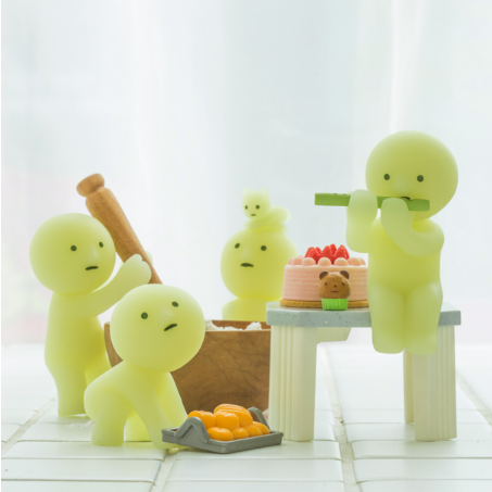 בובות Smiski זוהרות בחושך מסדרת חיים, בה כל דמות בפעילות רנדומלית מחיי היומיוםץ.