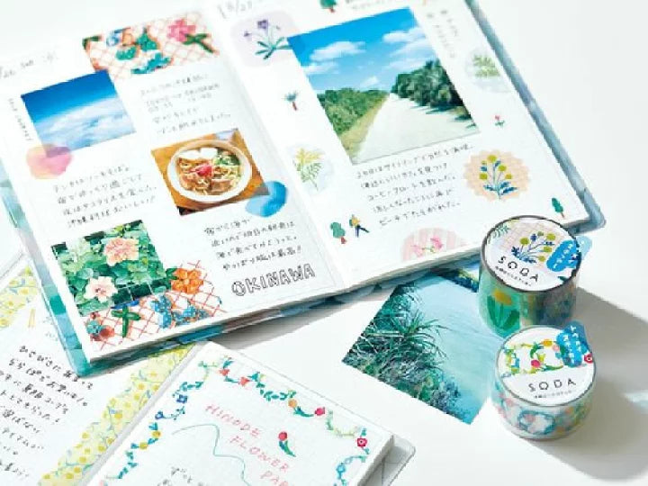 מסקינג טייפ יפני רחב שקוף מבית King Jim מעוטר באיורים של צמחים וטקסטורות היוצרים גינה צבעונית מלאת חיים.  מושלם ליצירה, קישוט אריזת מתנה, כרטיסי ברכה ועוד.