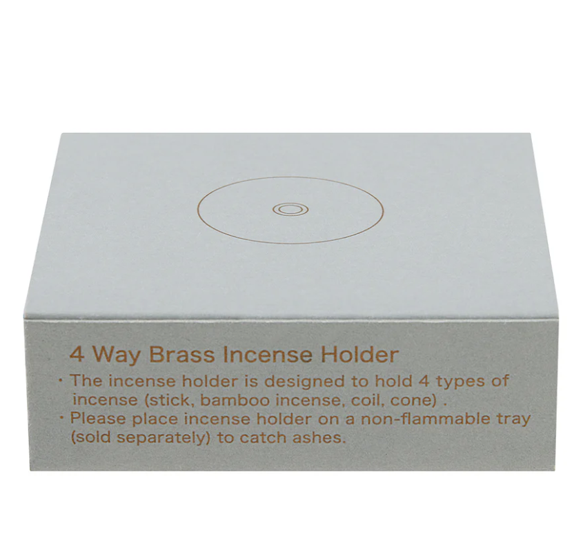מעמד לקטורת מפליז מבית Nippon Kodo המעוצב כדי להחזיק ארבעה סוגים שונים של קטורות: מקל במבוק, מקל קטורת קלאסי, ספירלה וקונוס.