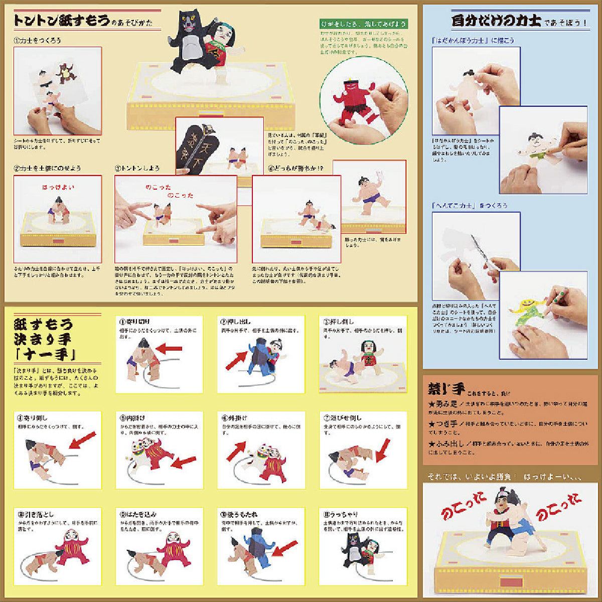 קופסת הערכה משמשת כזירת היאבקות סומו, וכוללת מגוון אביזרים ליצירת דמויות מתאבקים ומדבקות ייחודיות לקשט אותם.