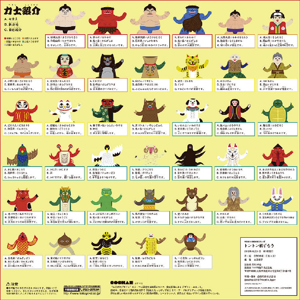 תכולה: אריזה המשמשת כזירת סומו למשחק גיליון הוראות משחק והצגת הדמויות 19 גיליונות עם אביזרים להרכבת דמויות מתאבקים מדבקות לקישוט