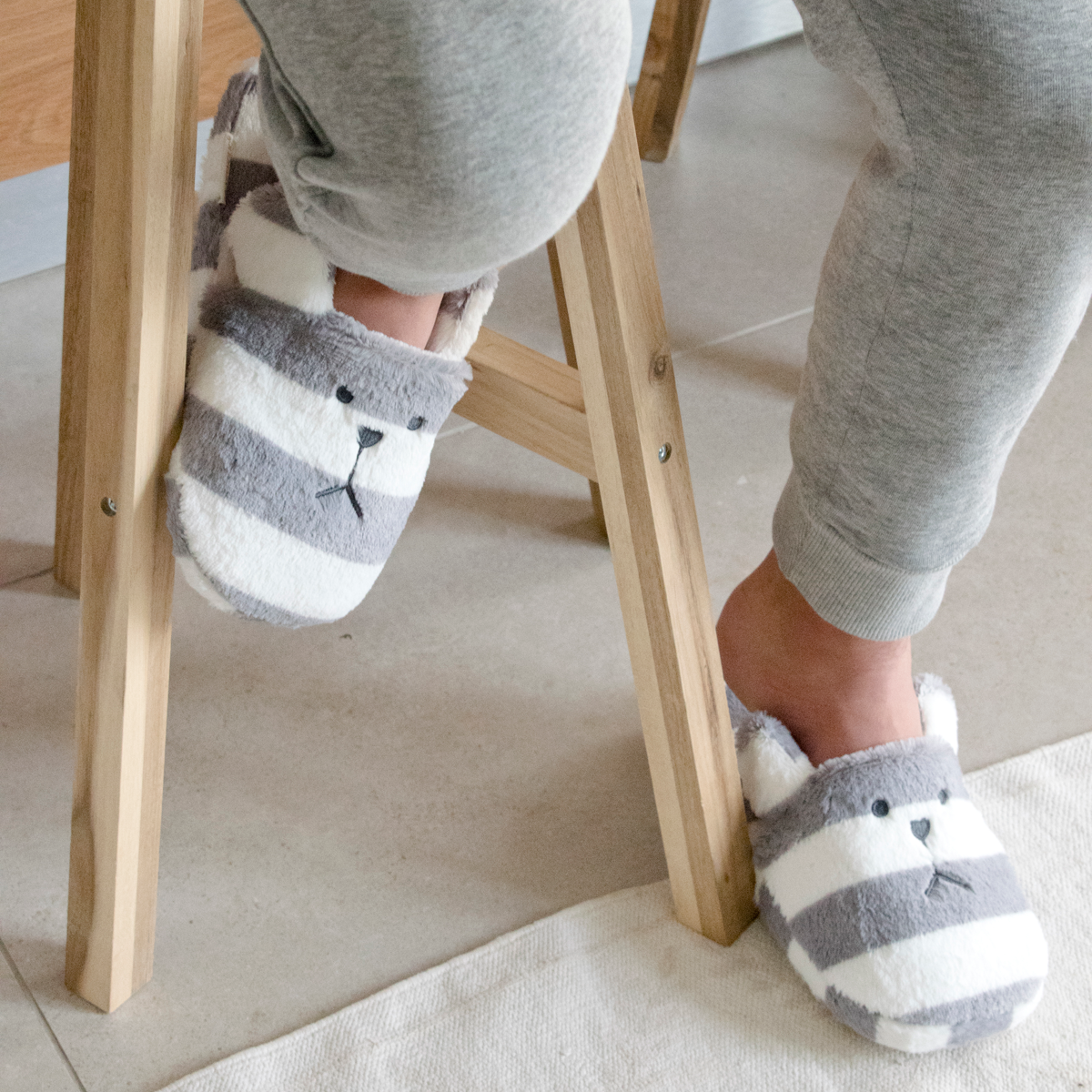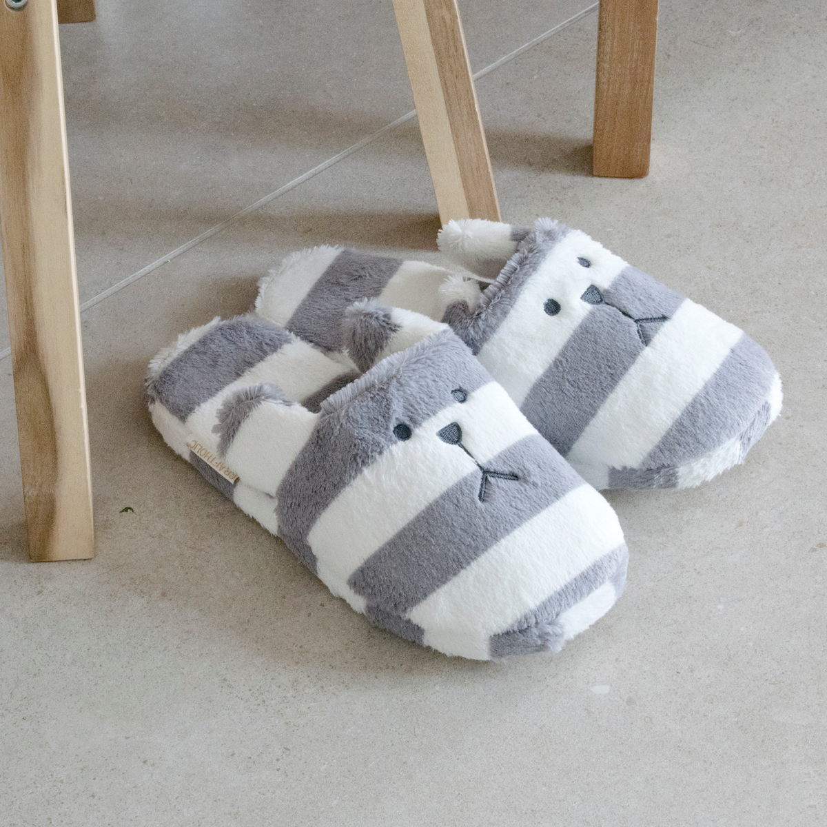 נעלי בית L - דובי פסים אפור לבן / מידות 36-39