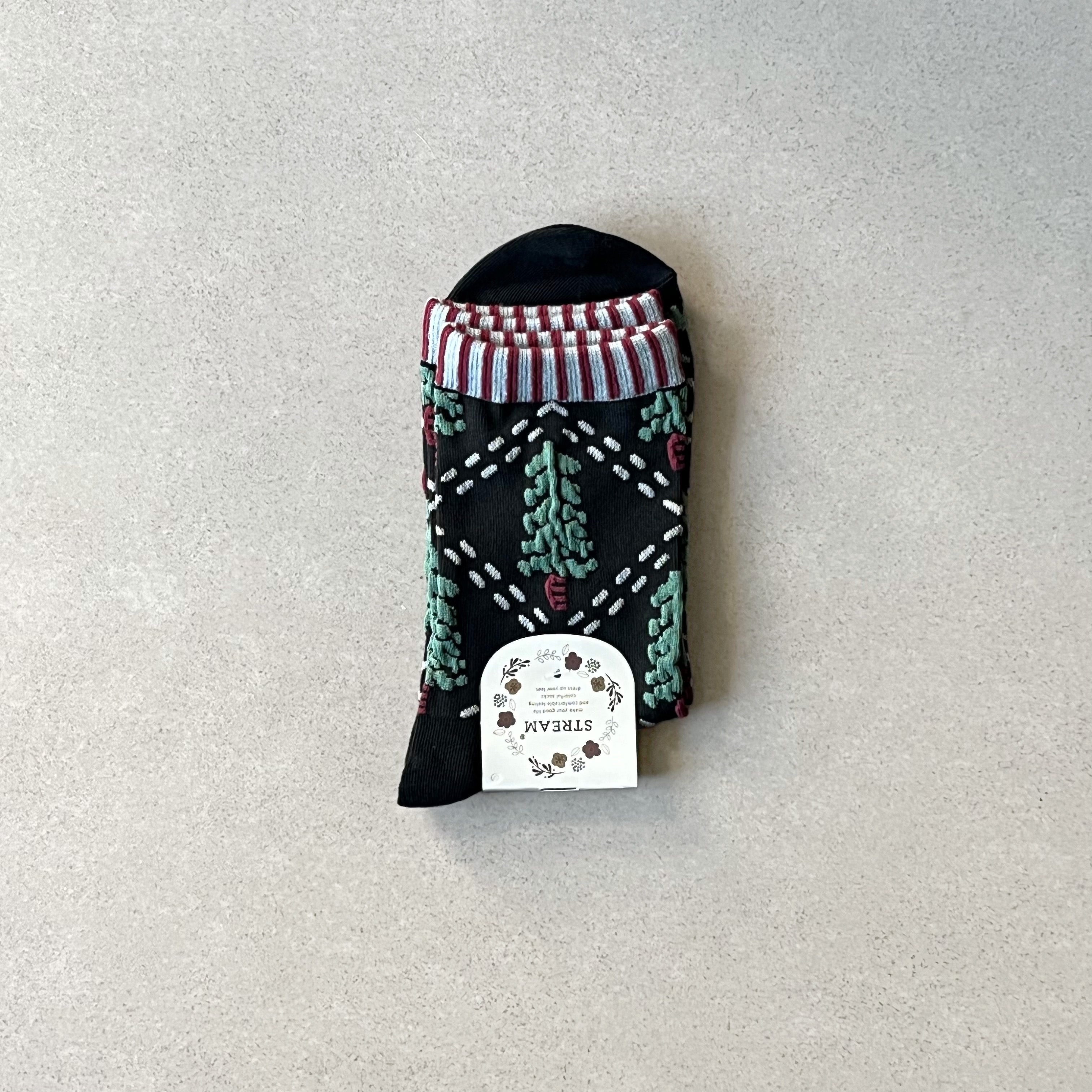 גרביים 36-41 - פרחי מרגנית אפור כהה