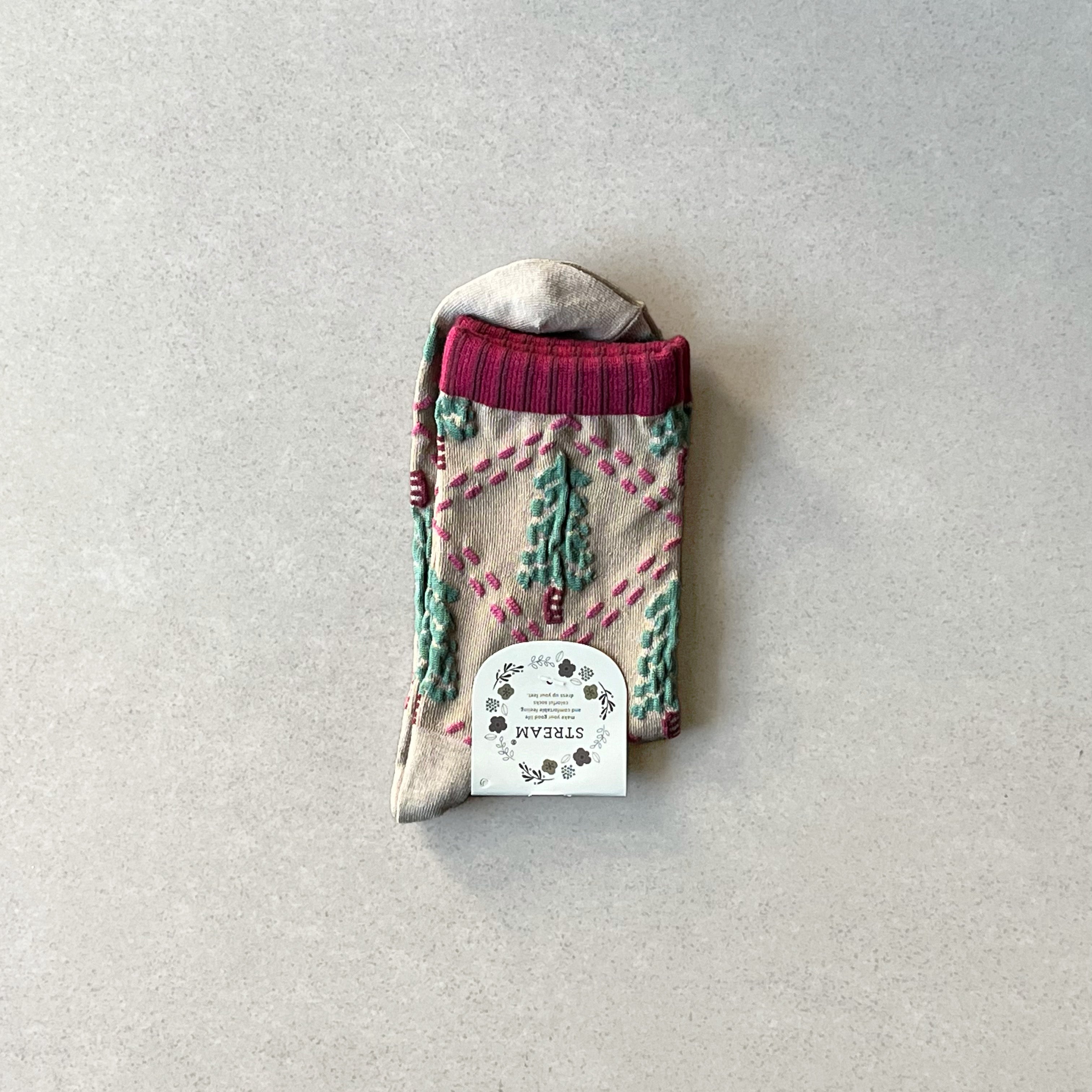 גרביים 36-41 - רקמת ויסטריה שנהב