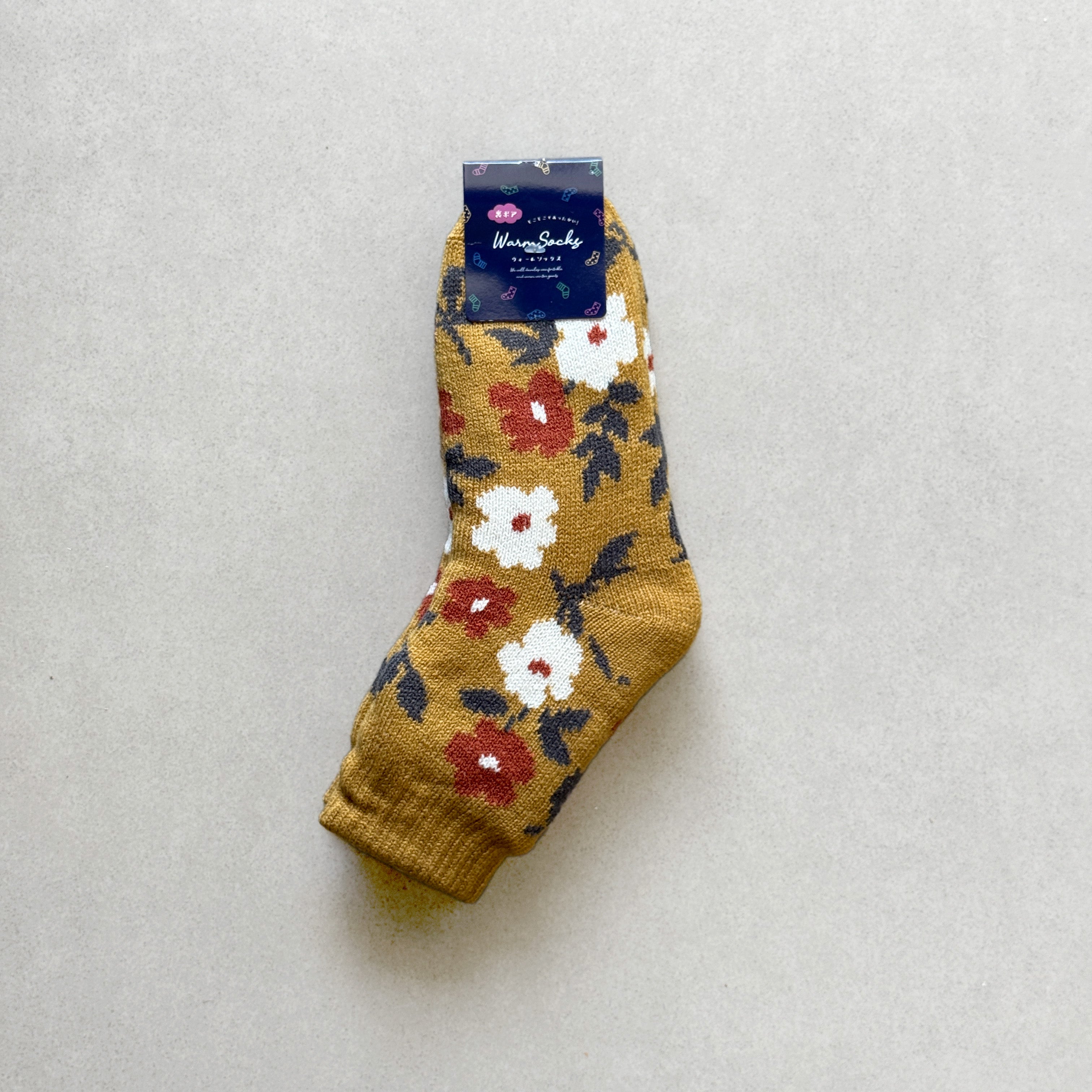 גרבי בית עבים 36-41 - פרחים ועלים צהוב