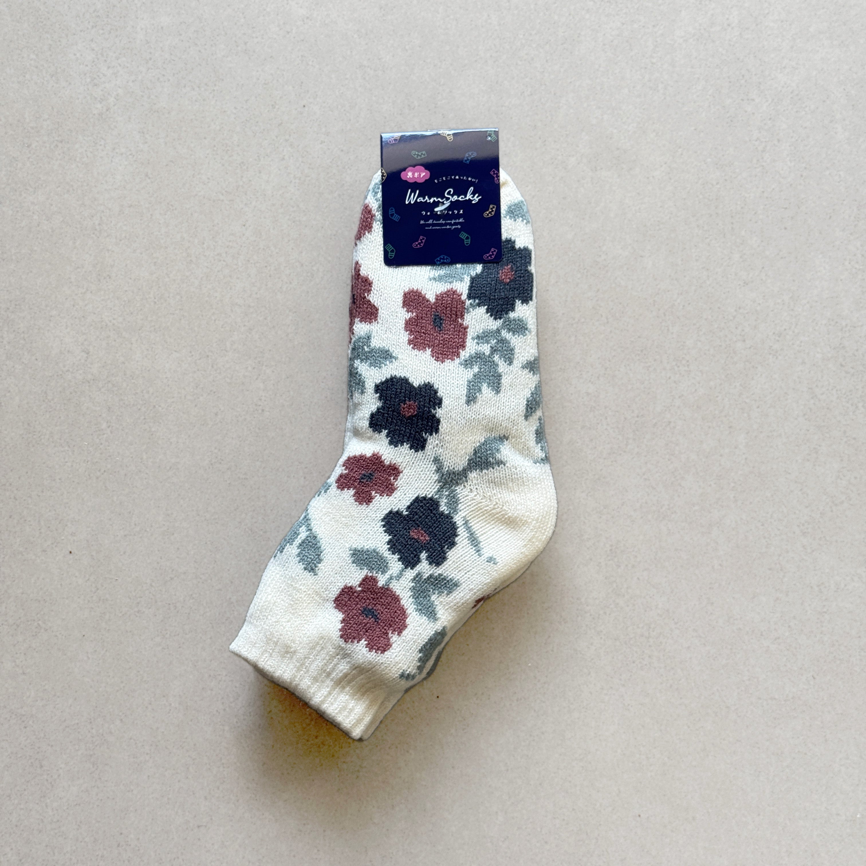 גרבי בית עבים 36-41 - פרחים ועלים לבן