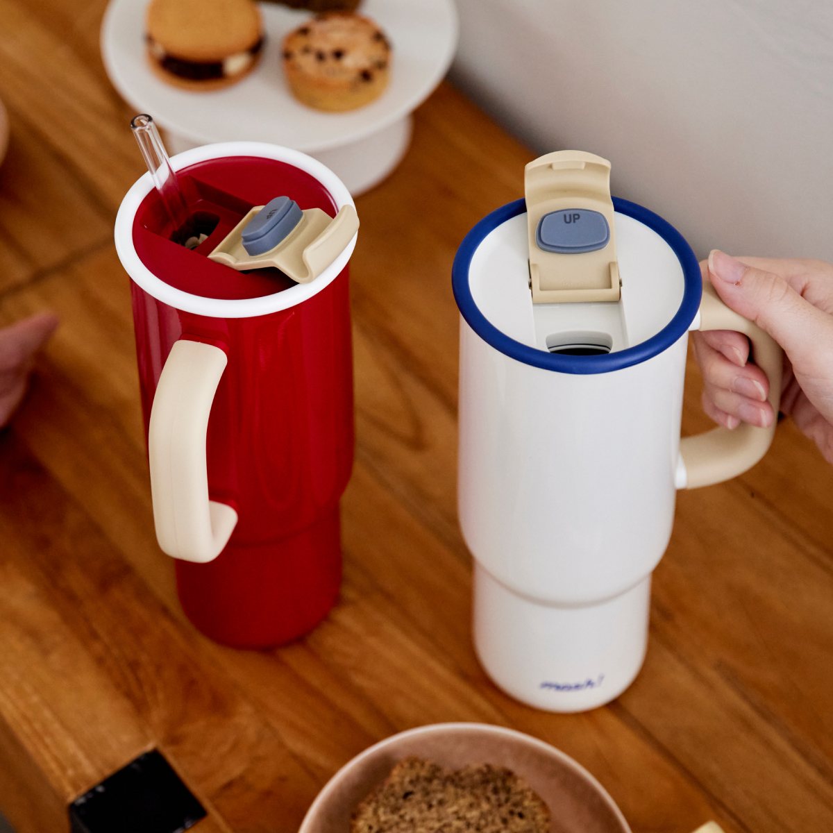 כוס תרמית לאטה עם קש קופץ וידית 820 מ"ל - אדום