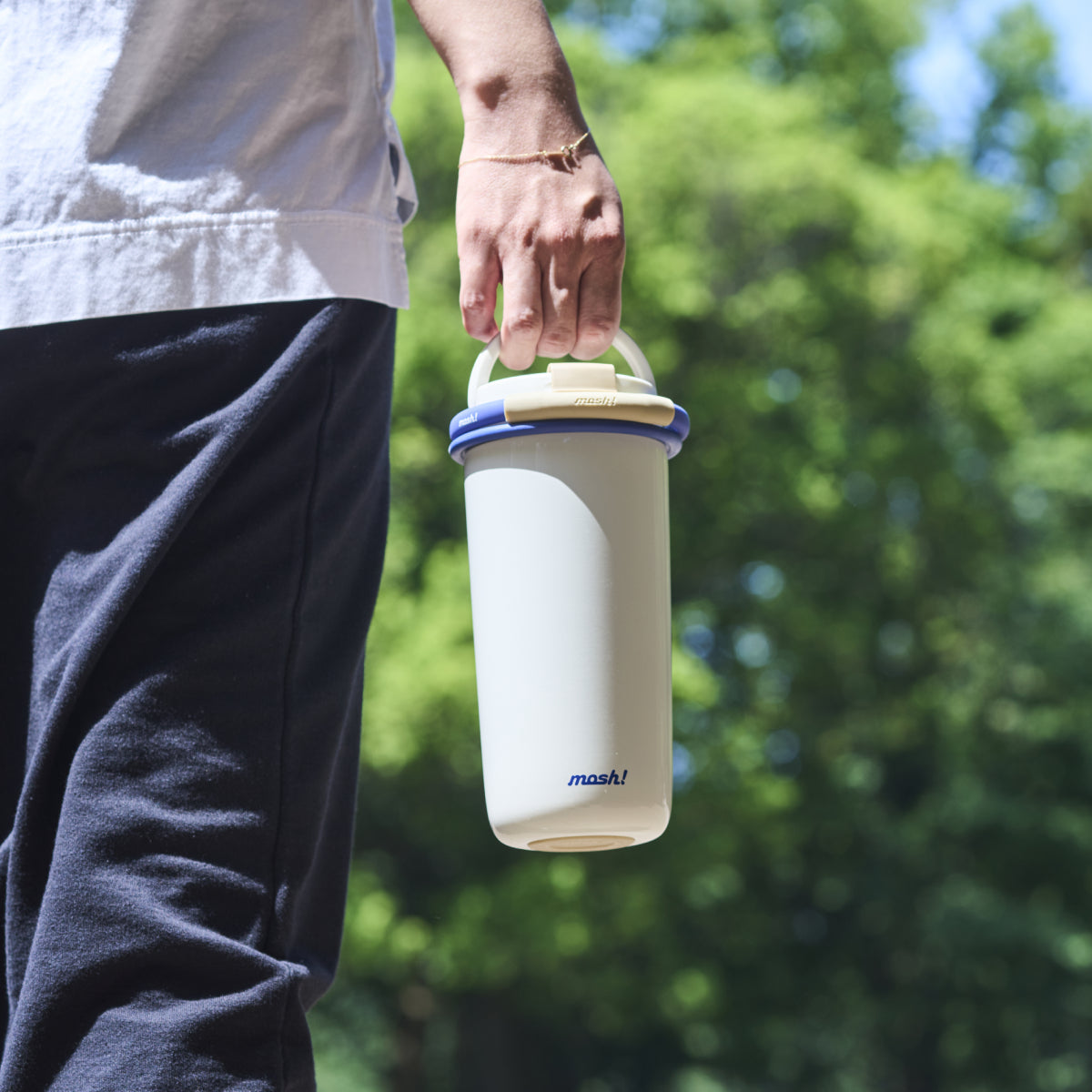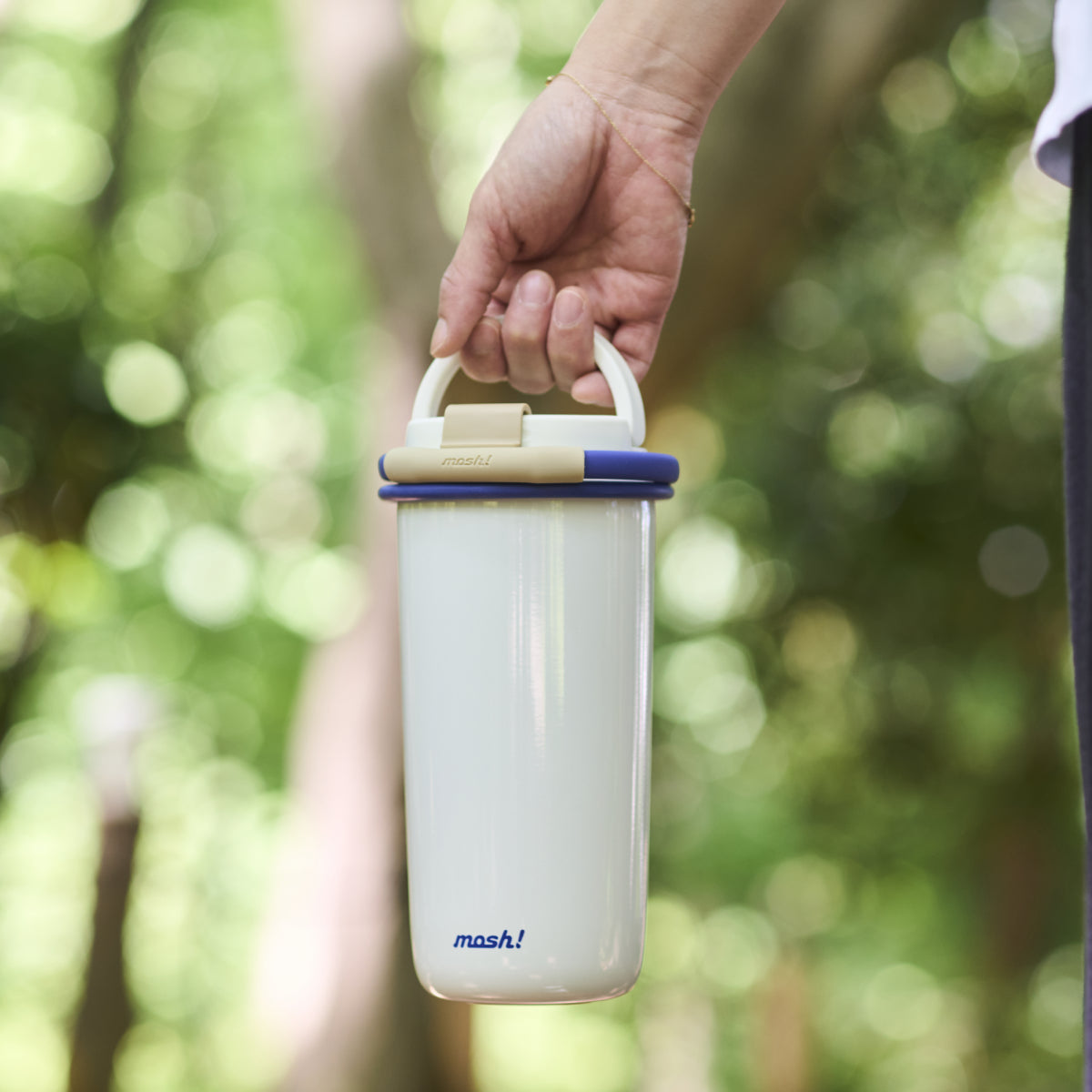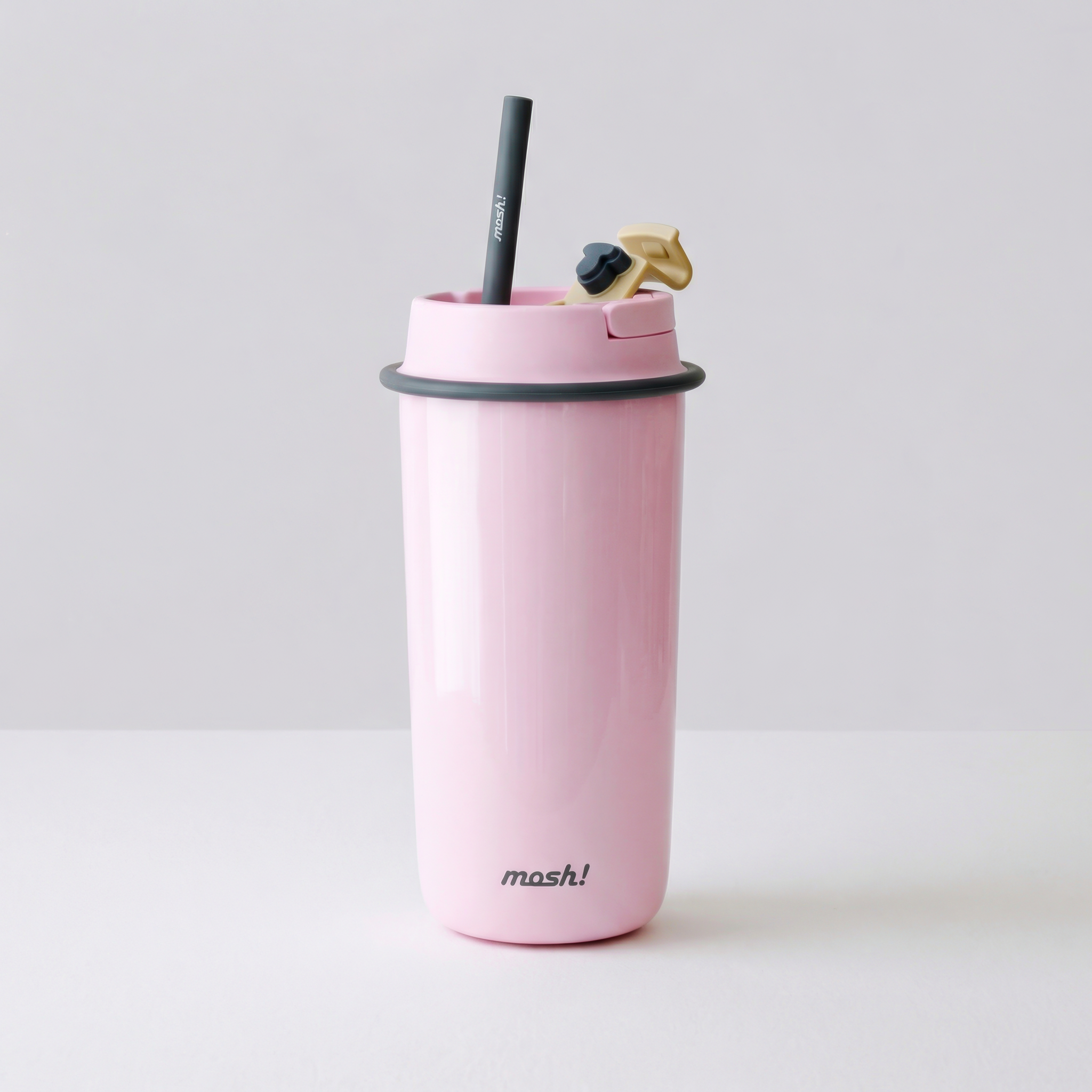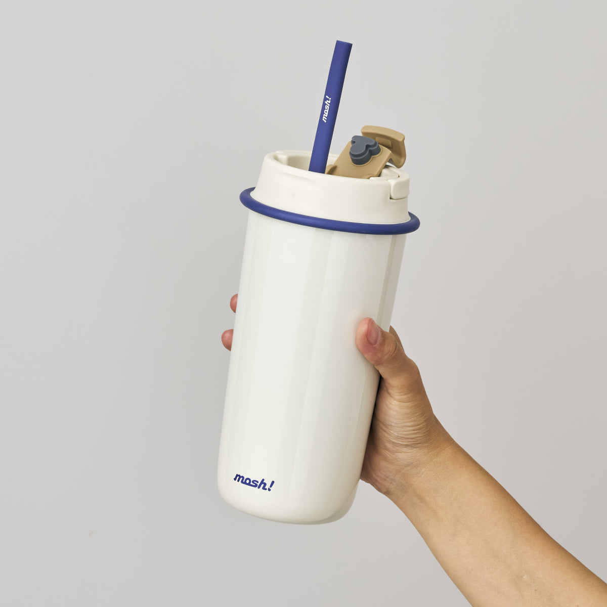 כוס תרמית עם קש מבית מוש, בעיצוב נקי ומינימליסטי בהשראת כוסות ה-TA מנייר - לקפה של הבוקר בפקקים, להתרעננות אחרי אימון או בתיק ליום סידורים, במהדורה מחודשת הכוללת ידית נשיאה על הפקק לנוחות מקסימלית.