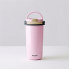 כוס תרמית לאטה עם קש וידית נשיאה 700 מ"ל - ורוד