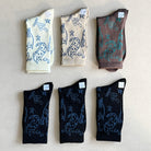 גרביים איכותיים מבית Stream יפן, בדגם פרחים צבעוניים, עשויים בד נעים ונושם אך עמיד מאוד, במבחר הדפסים ואיורים, טקסטורות ושילובי צבעים מעניינים.